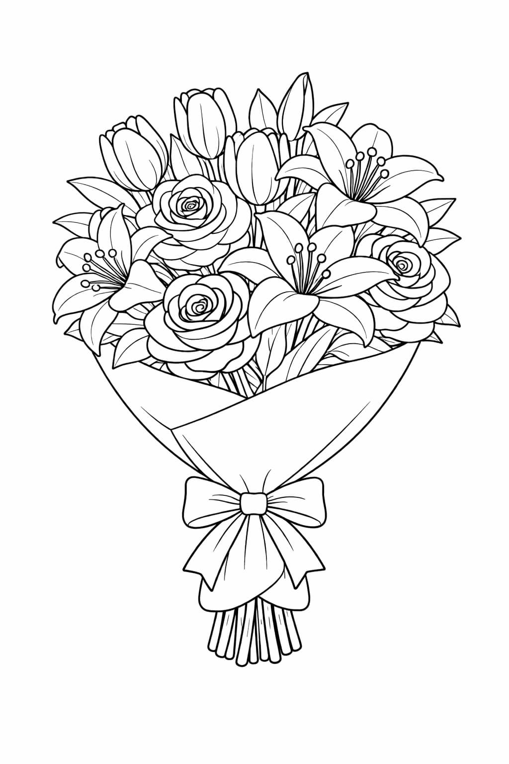 Flower bouquets are popular coloring subjects because they combine variety, balance, and natural beauty in a single design. Each bouquet offers multiple elements to color, making these pages both engaging and visually satisfying. This category brings together different bouquet styles, allowing you to explore floral coloring pages based on flower type and design.