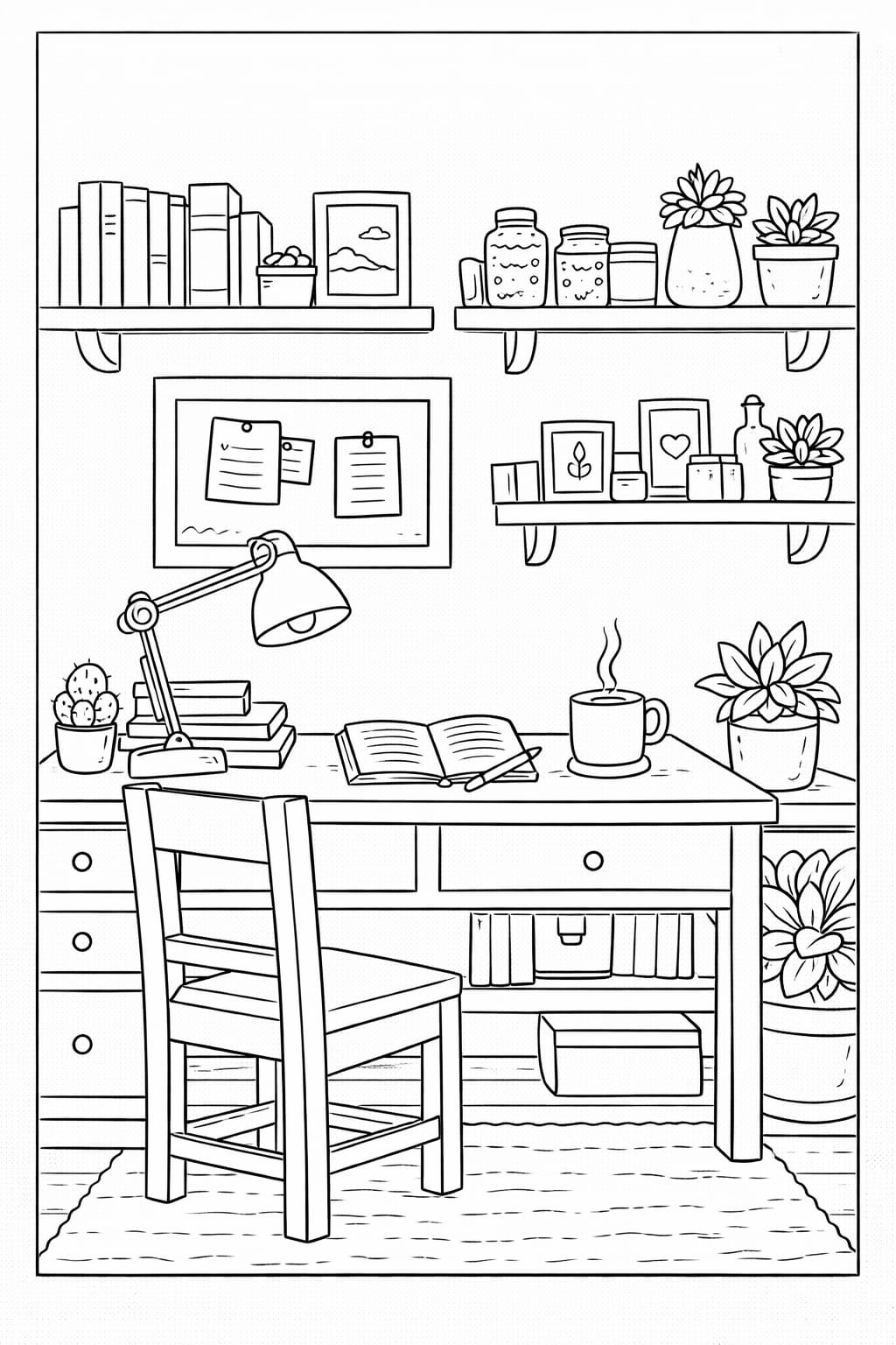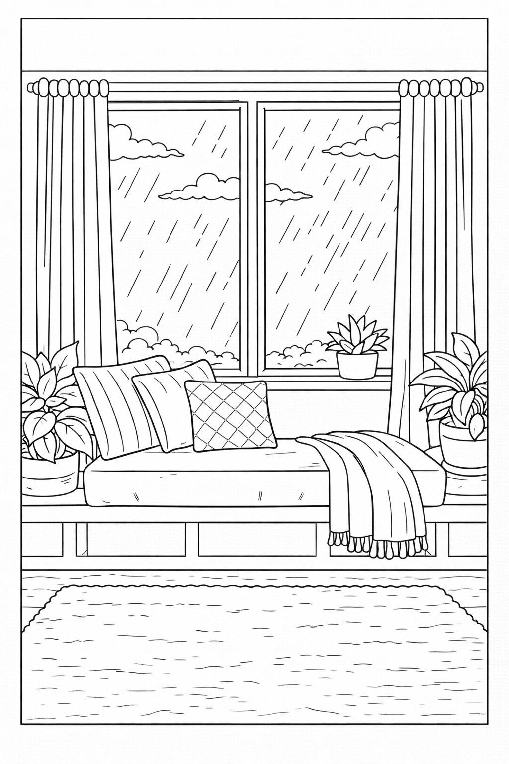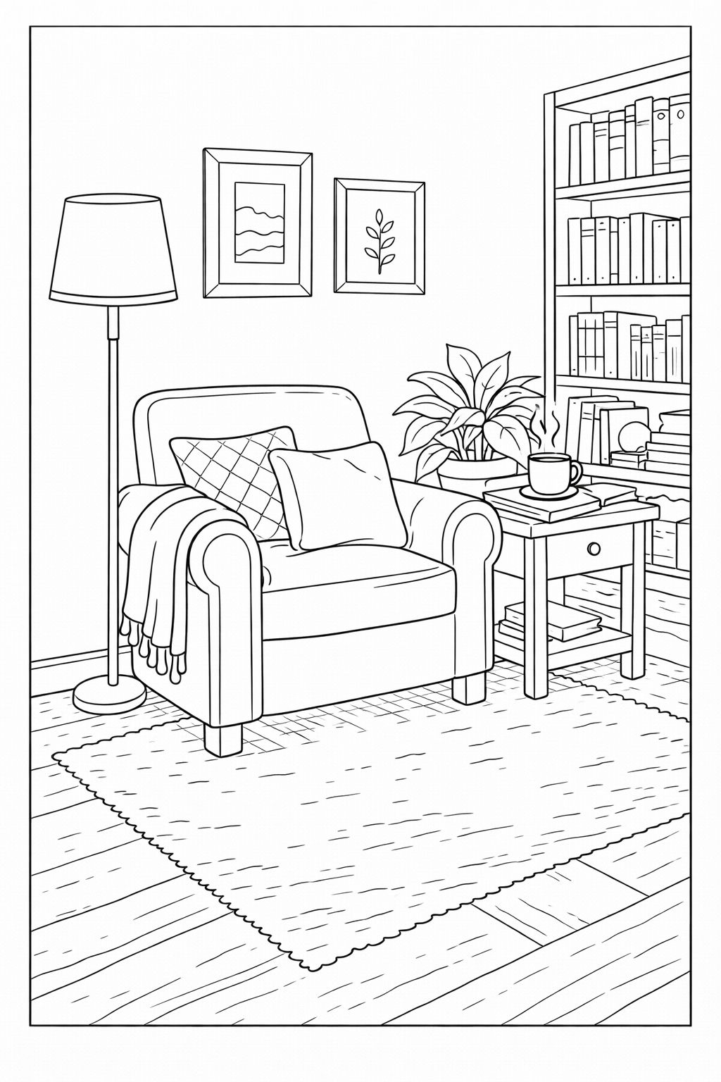 Cozy coloring pages feature warm, comforting illustrations inspired by peaceful interiors, quiet corners, and inviting everyday spaces. On this page, you’ll find a curated collection of printable cozy coloring pages designed to capture a sense of calm, comfort, and relaxation through coloring.