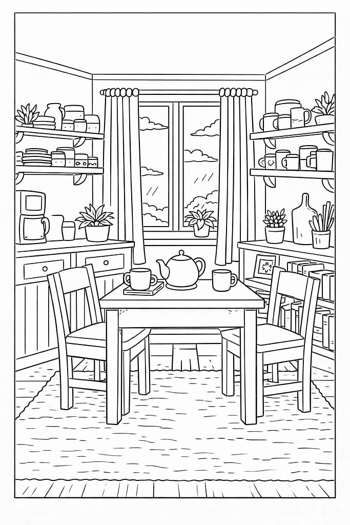 If you enjoy coloring cozy interior spaces like these, you may want to explore our complete Cozy Interiors Coloring Book.