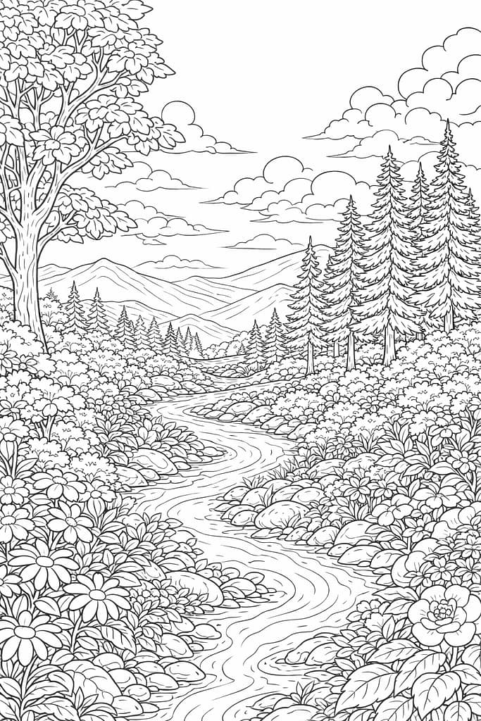 Nature coloring pages for adults focus on scenes and elements from the natural environment, designed with a level of detail that encourages relaxation and concentration. Unlike simple children’s coloring sheets, adult nature pages often include intricate patterns, layered scenery, and balanced compositions.